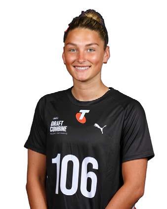 McMillan is one of the more complete midfielders in next year's draft. While her standout traits are her clean hands and skills, the Eastern Ranges onballer is also a fierce tackler and punches well above her weight. A pure midfielder who is so well balanced between her offensive and defensive traits, McMillan works her way around a stoppage well and her release by hand both under pressure and in space by drawing an opponent is sublime. Her overall profile is as well rounded as any.