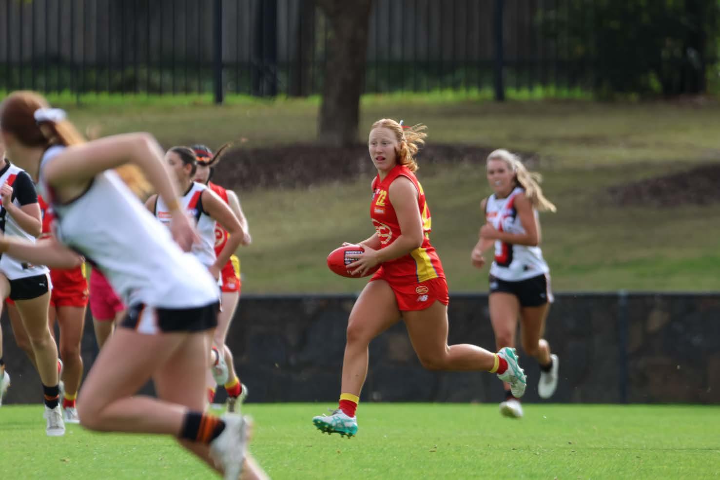 well. Taking on the Lions Academy in two Under 17 Championships matches back in 2021, Harrington averaged 22.0 disposals, 4.0 marks and 4.5 rebound 50s off half-back, and then by 2022 had made both the Under 18s Queensland squad and Suns Academy Coates Talent League Girls sides. She held her own stepping up to spend time around the ball and off a wing at times, while still providing run off half-back. By her bottom-age year she was stepping up to be an ...