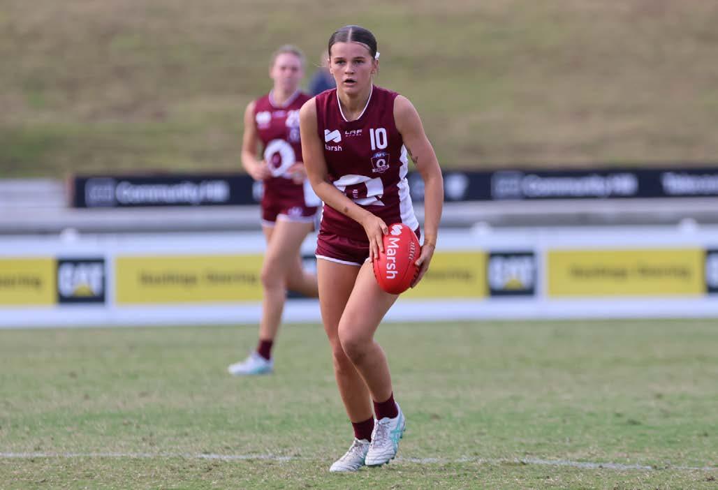 One addition to the Top 25 to Watch in 2025 is Foat who produced a really consistent bottom-age national carnival where she averaged 19 disposals, four tackles and two clearances per game in a really strong Maroons on-ball group. Though not tall, Foat is fierce, and her season was capped off with a brilliant Under 17 Futures match where she collected 22 disposals, two marks, two tackles, two clearances, two inside inside 50s and two rebound 50s, covering the ground well.
