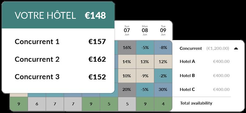 Avec RaccoonRev, notre solution avancée d’ajustement des tarifs, vous disposez d’un outil innovant pour comparer vos prix avec ceux de vos trois principaux concurrents et accéder à des informations stratégiques afin de vendre vos chambres au meilleur prix.