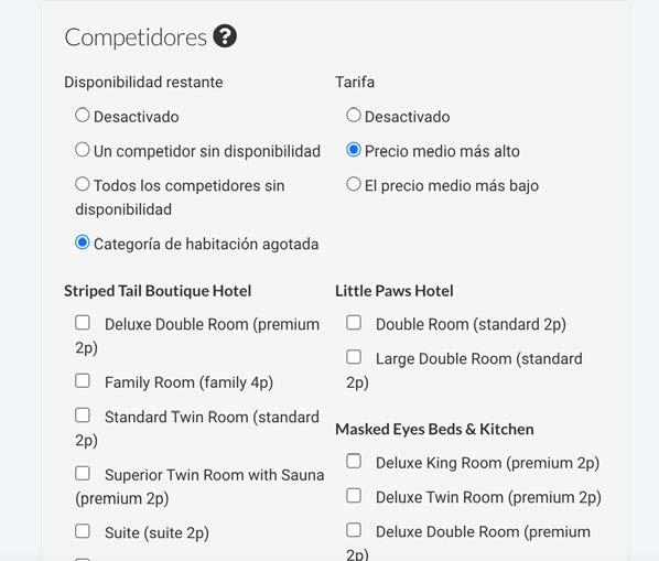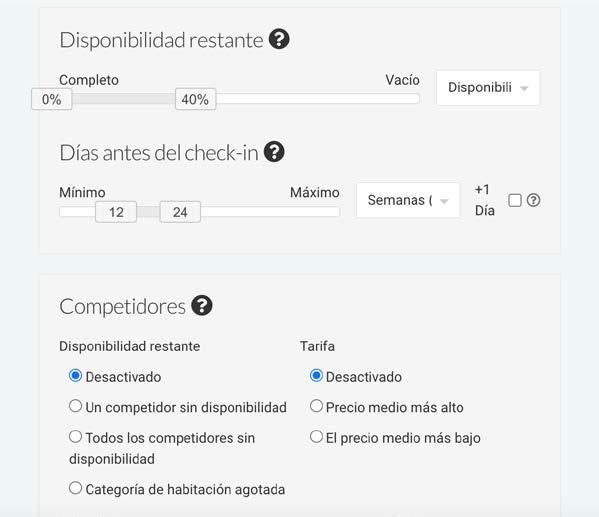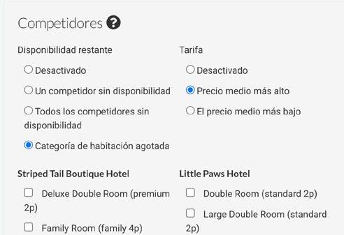 Configura una regla de rendimiento que incremente el precio de la/s categoría/s de habitación que tus competidores no tienen disponibles.