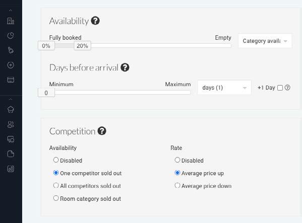 Set a competitive yield rule that will boost your prices when the room categories of chosen competitors are no longer available.