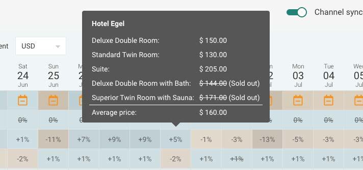 RaccoonRev provides you with an in-depth look at your competitors’ room categories, including the average prices they charge and whether or not those rooms are sold out.