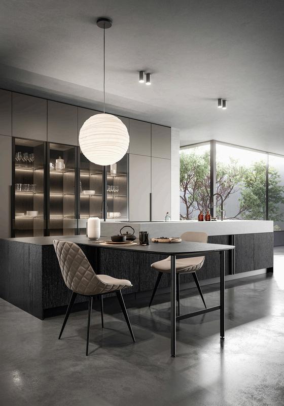 GLASS2.0 Glass 2 0 is the designer kitchen with glossy, matte or HPL finishes. It features aluminium doors with fronts and a sophisticated and elegant design A unique and airy environment, thought as heart of the house, it must perform different tasks optimally. glass grip-profile opening A totally refined style, robustness and durability are guaranteed For those who want refinement, elegance, and efficiency Glass refinement meets a