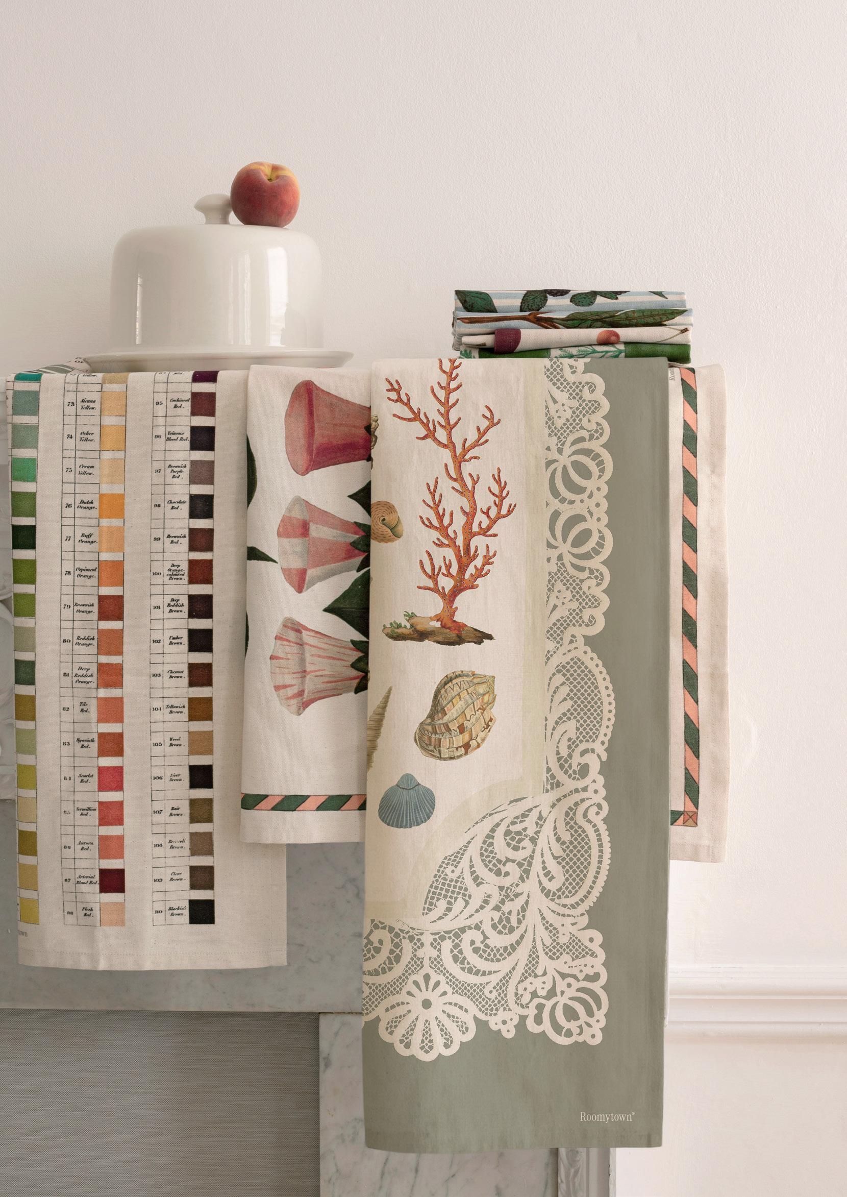 This season, those threads led me to two worlds I’ve loved for years: shells and herbariums. Tiny specimens, delicate engravings, little prints of nature that once lived quietly inside dusty volumes. We’ve restored them, re-coloured them, and built a whole new collection around them — prints, trays, playing cards, and pieces that feel calm, fresh, and full of that early-spring energy.
