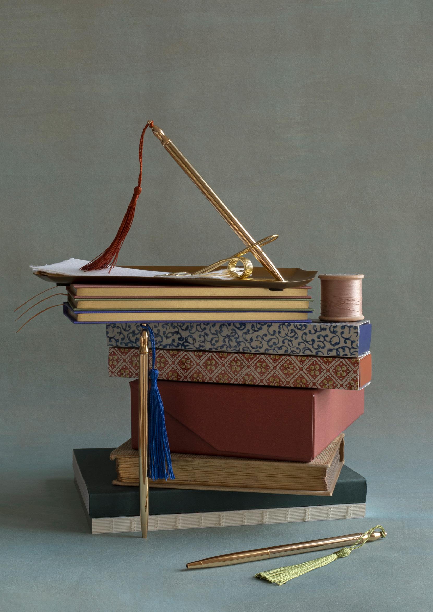 As part of the Words of Wisdom collection Elegant 24k gold-plated ballpoint pens with a tassel. Inspired by dance card pens. Designed for daily writing, gifting, and pairing with our Slim Notebooks — a little moment of luxury for every list and note. Fitted with a standard D1 ink cartridge. PEN: H 6.1 " X