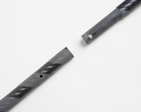 Rooster carbon tiller extensions are made on a metal mandril. The strength of the Rooster design is not only in the unidirectional fibres but, more importantly in the 45 degree twill around the outside. This is rolled onto the mandrill at the end, which is then heated and pressed. The twill enables the extension to hold and maintain it’s circular shape, notably a circle has no weak point, so in maintaining it’s shape the extension will remain strong and intact.