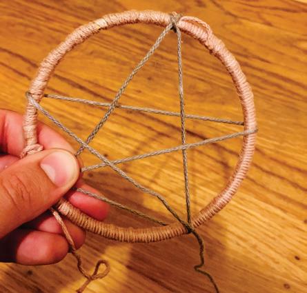 Decida que figura quiere en el centro del círculo y cuando termine de diseñar, amarre un nudo alrededor de uno de los extremos del círculo.