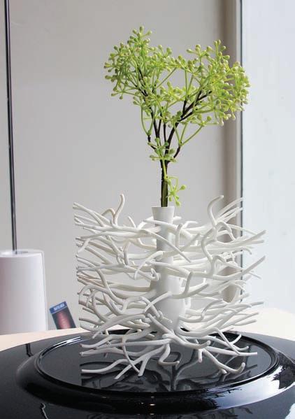 groups who have criticised this aesthetic shift towards the “blobular” style. They pronounce that we must “break the blob… and design with an edge”. Certainly we can describe the work of Tavs Jørgensen, from the ‘PBB’ exhibition, as having a technological edge. Like Rashid and others, Jørgensen straddles several creative areas including ceramics, glass, furniture making, and foundry work with new technologies such as rapid prototyping, digitising and motion capture.