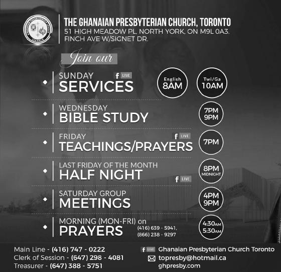 Tel: 416-916-3700 or Fax: 416-916-6701 or e-mail us at info@ghanaiannews.ca