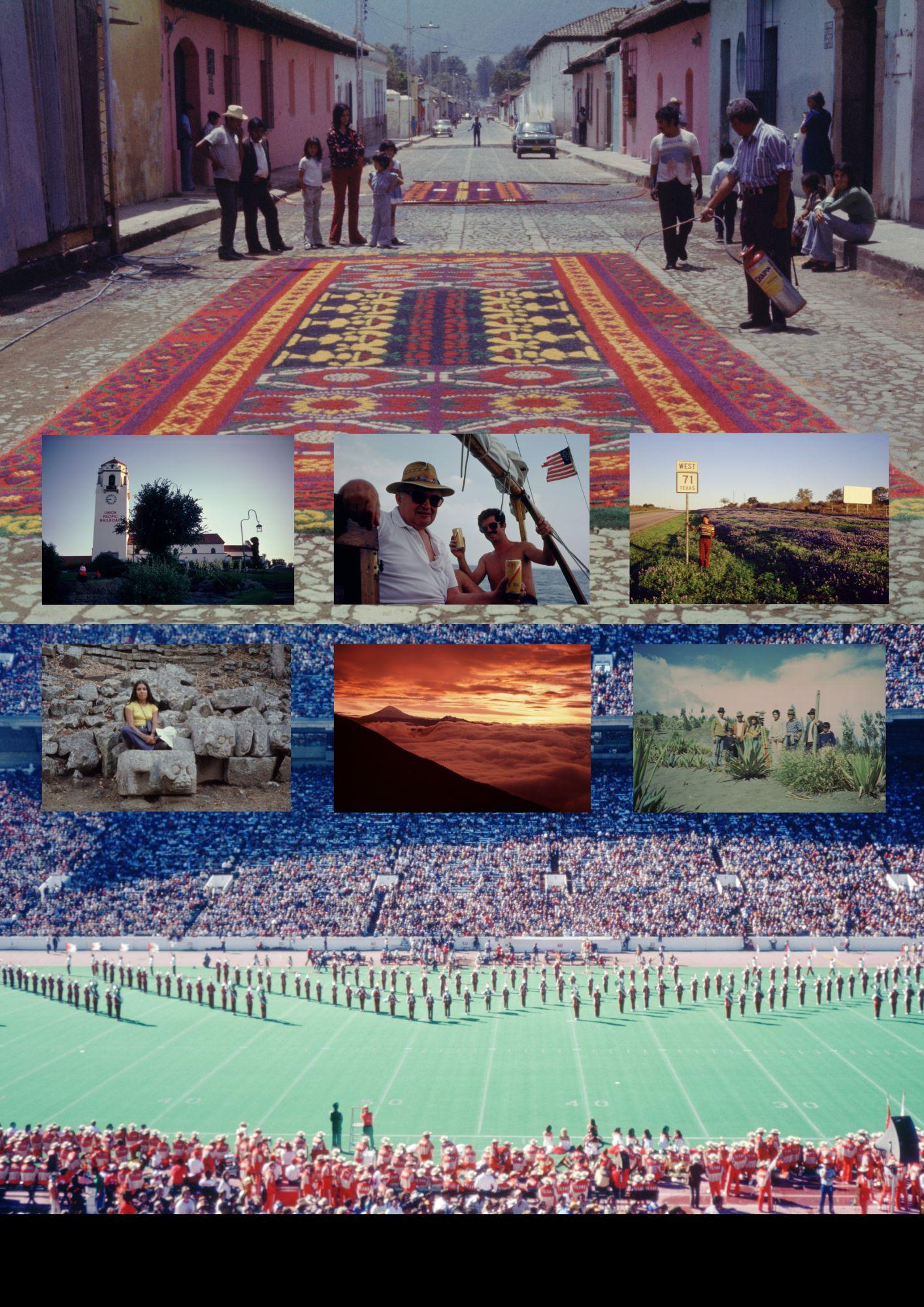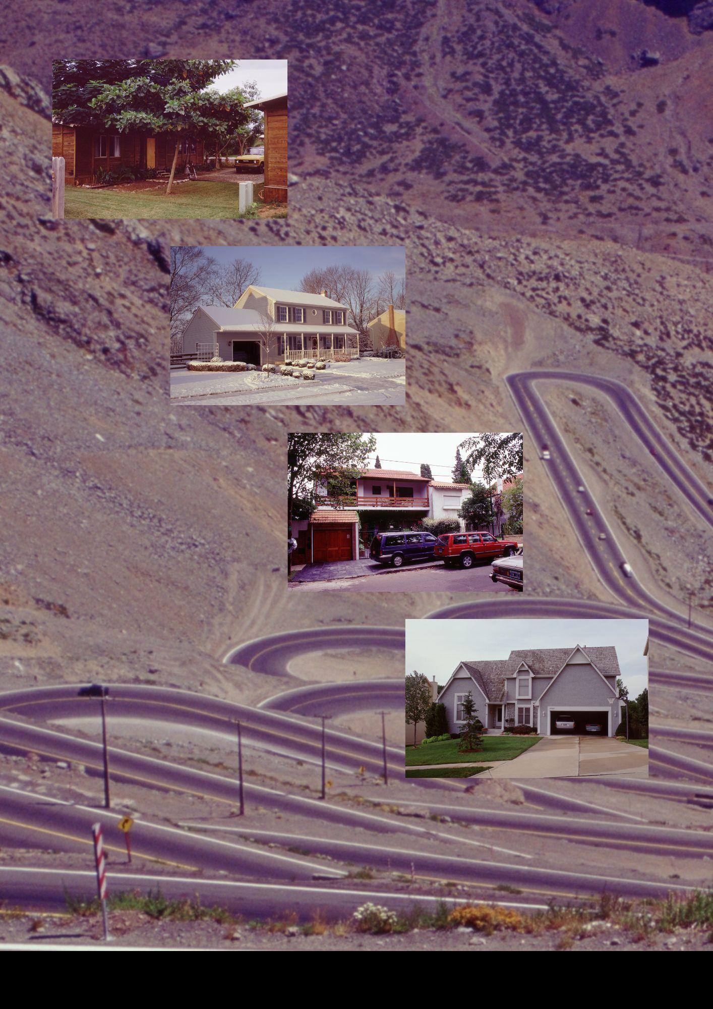Background: Argentina-Chile border, 1999. From top: Albania, Colombia, 1986; Mechanicsburg, Pennsylvania,1996; Buenos Aires, Argentina, 1998; Lenexa, Kansas, 2001.