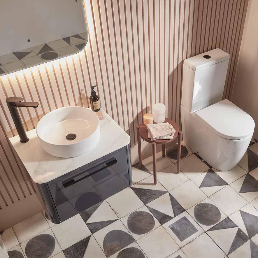 For a truly luxurious look, opt for one of our six stylish countertop basins, with three countertop finish options. See pages 78-79.