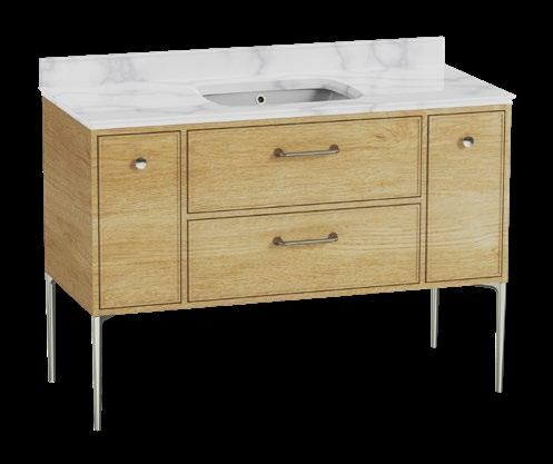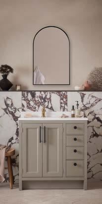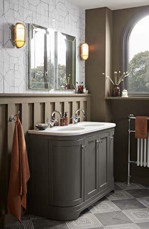 Elegant bathroom mirrors available in three finishes, with styles ranging from classic finials to straps, are designed to complement Walcot’s fittings for a cohesive look. See page 309