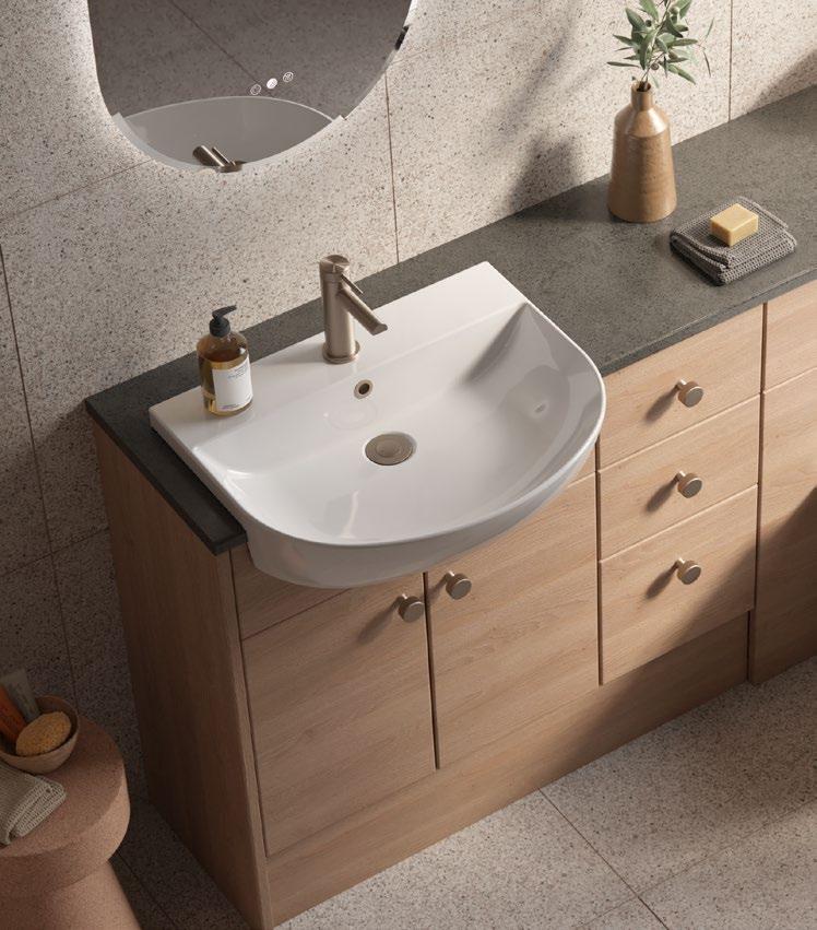 Faber offers nine finishes, handle options, storage units, and a choice of worktops with countertop or inset basins to enable a customised design approach.