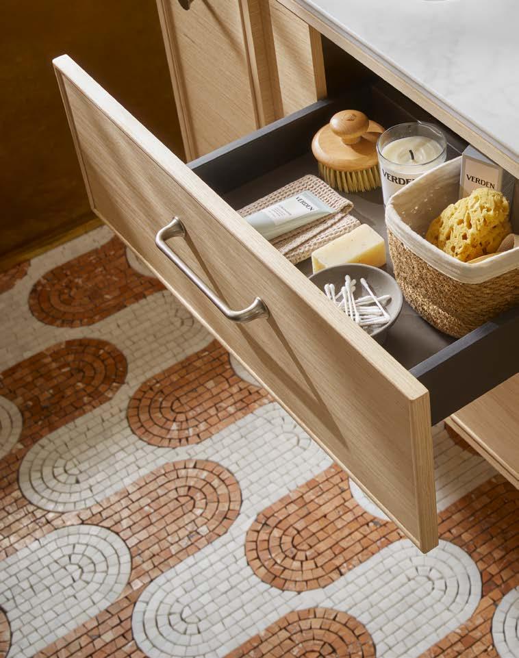 Choose from a range of mirrors and accessories that complement the collection’s iconic fittings and help create a cohesive, considered design story.