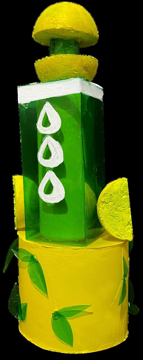 U s i n g a m i x o f r e c t i a n d c u r v i l i n e a r v o l u m e s , d e s i g n a r e b r a n d e d p e r f u m e b o t t l e f o r t h e l e m o n c o l o g n e " 5 5 5 " i n c o l l a b o r a t i o n w i t h a n o t h e r d e s i g n e r / a r c h i t e G o o d u s e o f c o l o r s p r o p o r t i o n a l b a l a n c e b e t w e e n c u r v i l i n e a r a n d r e c t i l i n e a N e a t n e s s c o u l d b e b e t t e r ( S t i c k i n g & b r u s h l e m o n c a p a n d s l i c e s m a k e t h e b o t t l e l o o k l b o t t o m c y l i n d e r l o o k s t o o b u l k y a n d t h e b o b e t t e r w i t h o u t i t