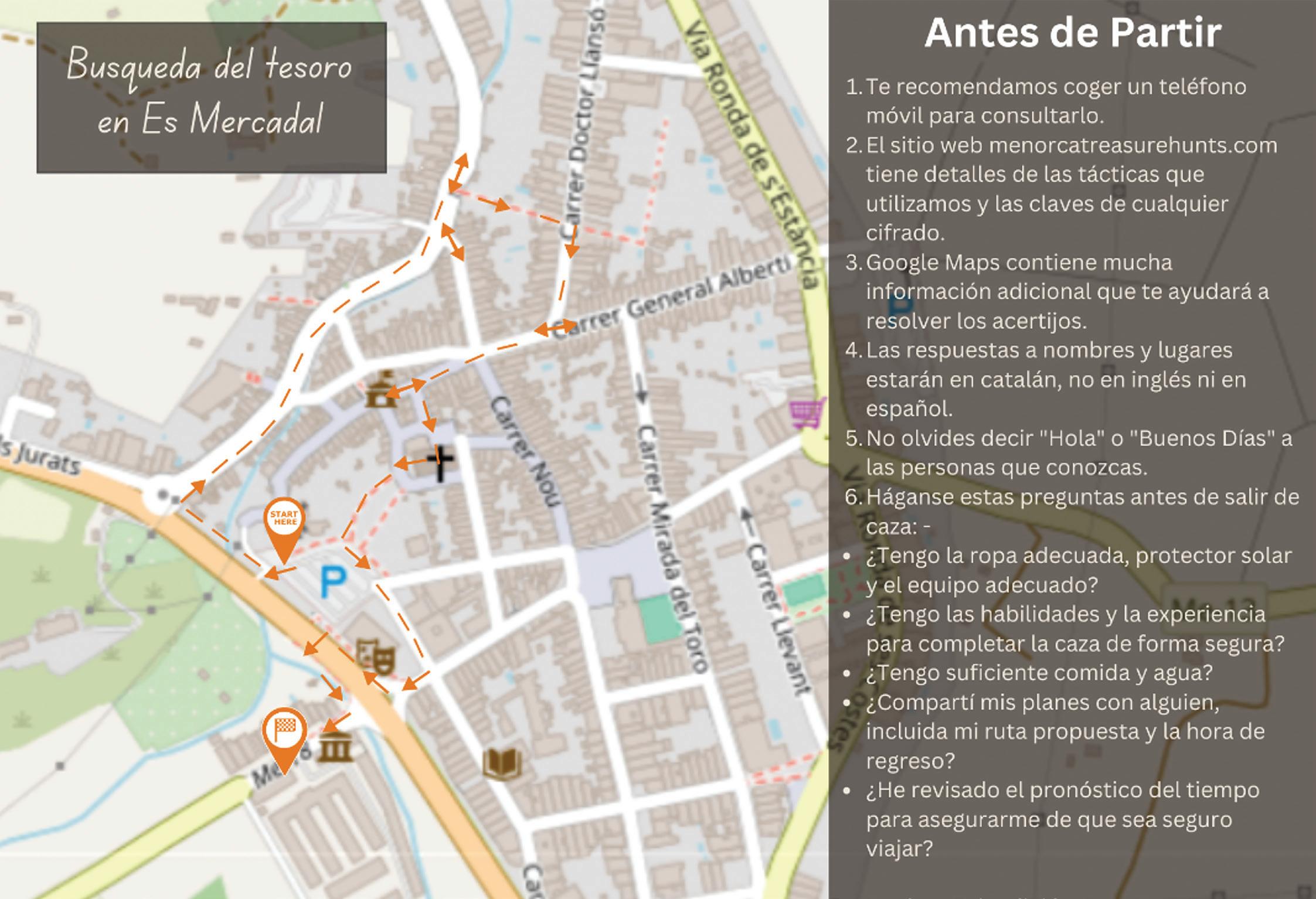 Al igual que la cacería de Alaior el mes pasado, la cacería de Es Mercadal está diseñada para ser una forma divertida de explorar la ciudad de Es Mercadal y es adecuada para personas de todas las edades que tengan un nivel razonable de forma física (hay algunos escalones empinados y colinas en algunos lugares).