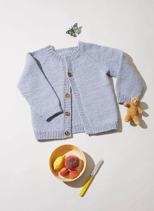 Saltojakken er et flott hverdagsplagg. Den strikkes frem og tilbake, ovenfra og ned i glattstrikk med økninger til raglan. 450–1←↑