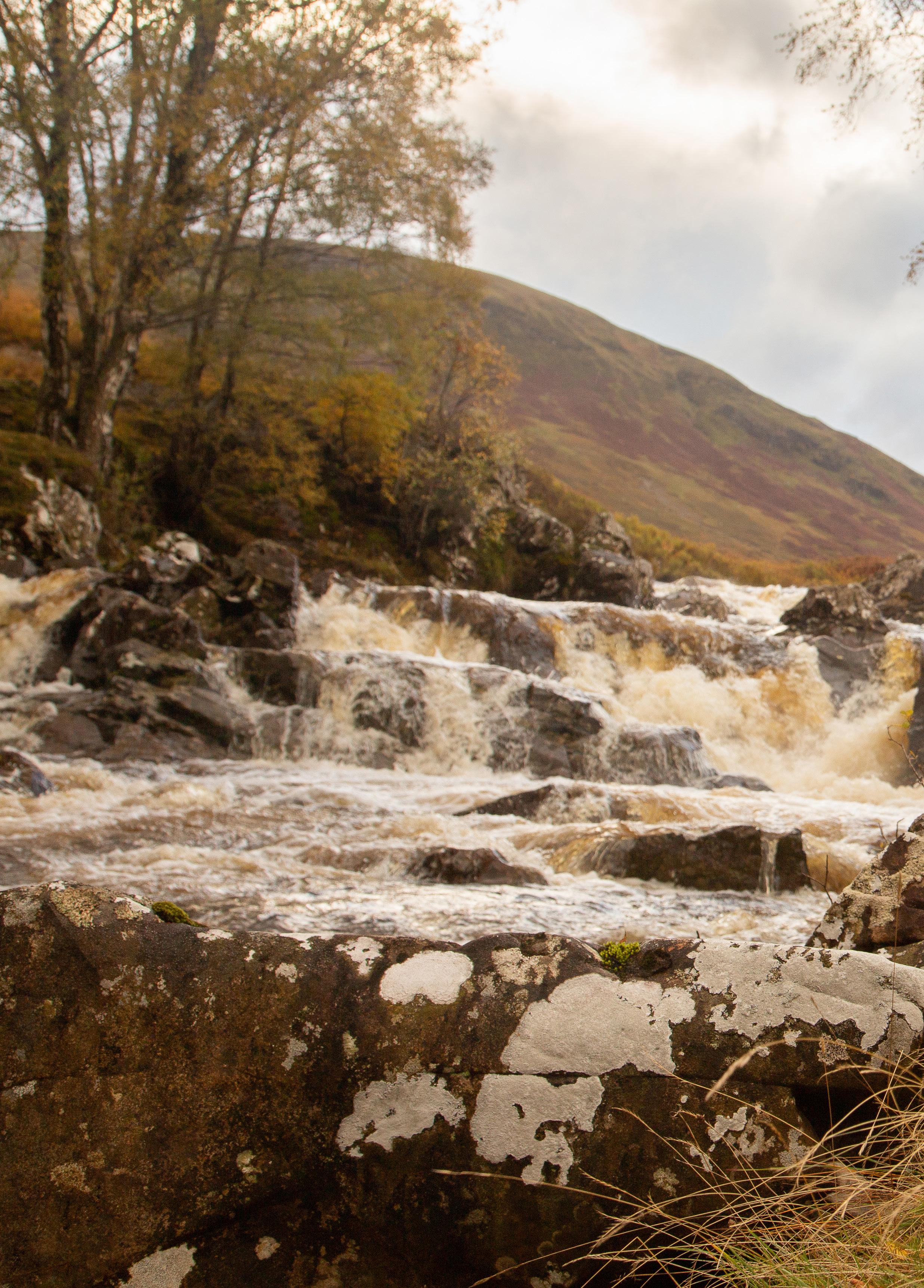 Cara wears Grandma’s 1930’s dress and vintage Scottish wool cardigan. Glen Lyon.