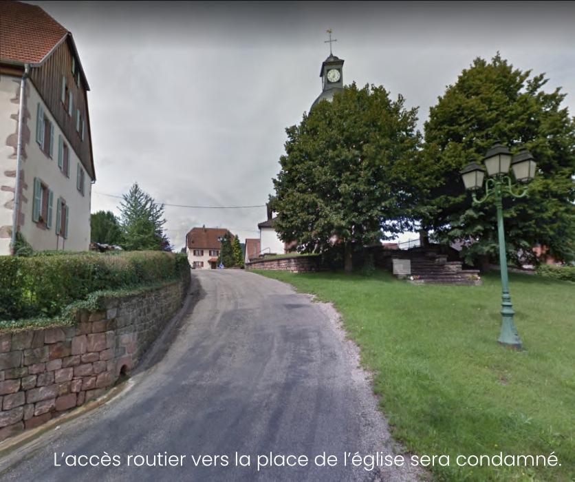 Créationd’uncheminementpiéton sécurisélongeantlejardindel’église, àl’abridumur:ouverturededeux passagesdanslemurd’enceinte del’église