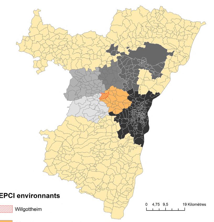 Cartographieàéchelledépartementale, afndesituerl’imbricationdelazonedeprojet etsonrapportaveclesEPCIenvironnants.