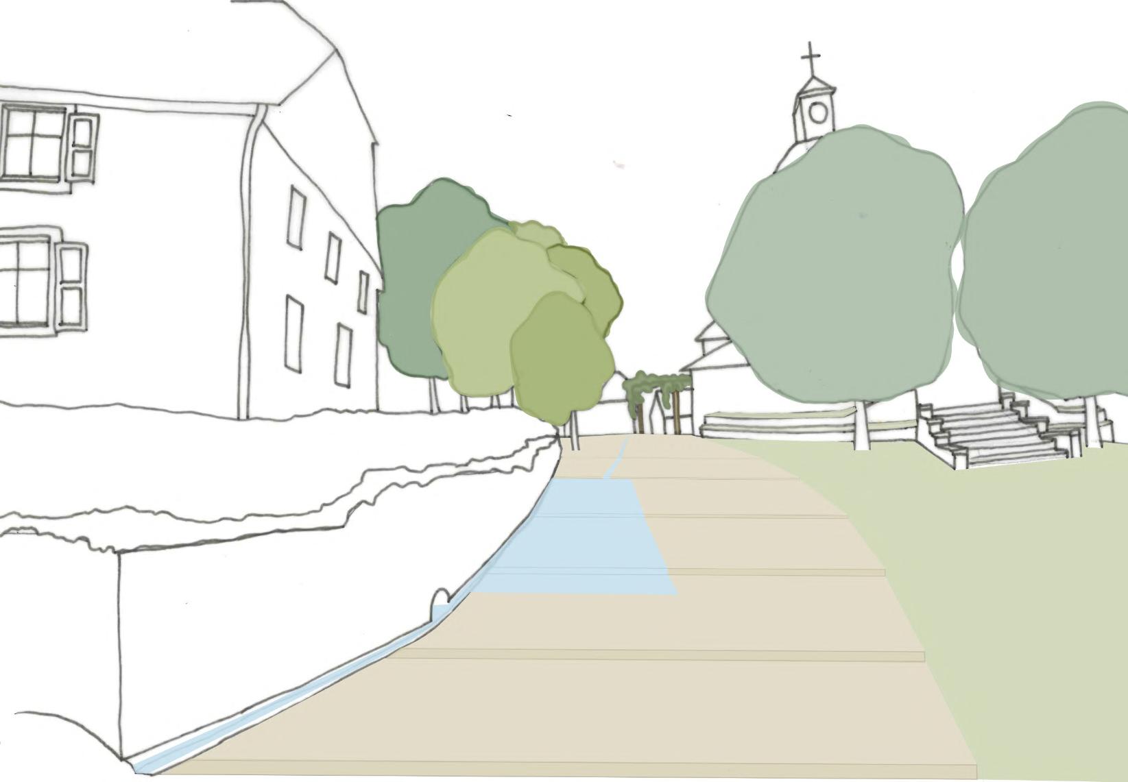 Leprojetviseàinscrirecetenvironnement dansleprojetd’aménagementdesabordsde l’égliseetdelaplaceenbelvédère,encréant unjardinpublicvégétaliséoùlepetit patrimoineruralliéàl’eauestmisenvaleurde partleréemploidematériauxlocaux.