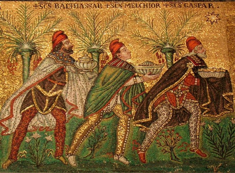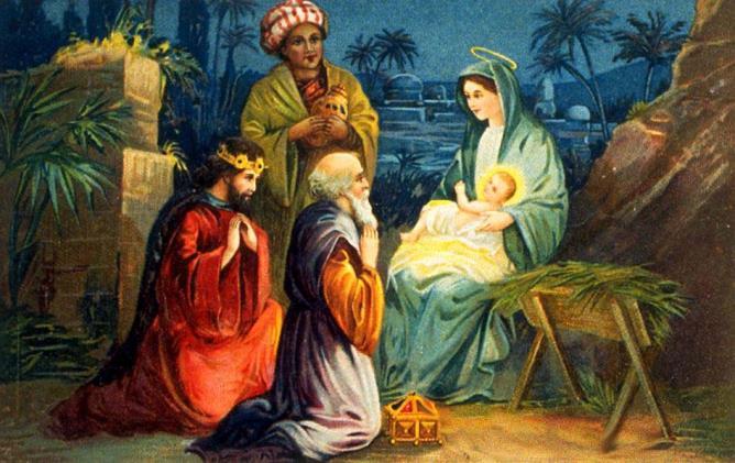 No oriente homens que estudavam os astros viram uma estrela diferente. Então perceberam que o Rei dos judeus havia nascido Com o propósito de adora-lo e honrá-lo Seguiram a estrela até Belém Onde encontraram o Menino Rei Respeitosamente, " se ajoelharam diante dele e o adoraram Também o honraram oferecendo-lhe presentes: Ouro, incenso e mirra”