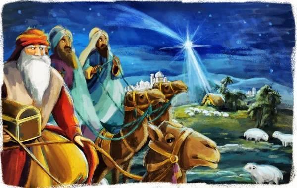 Os Reis Magos Vêm a caminho Seguindo a estrela Que os leva ao Menino
