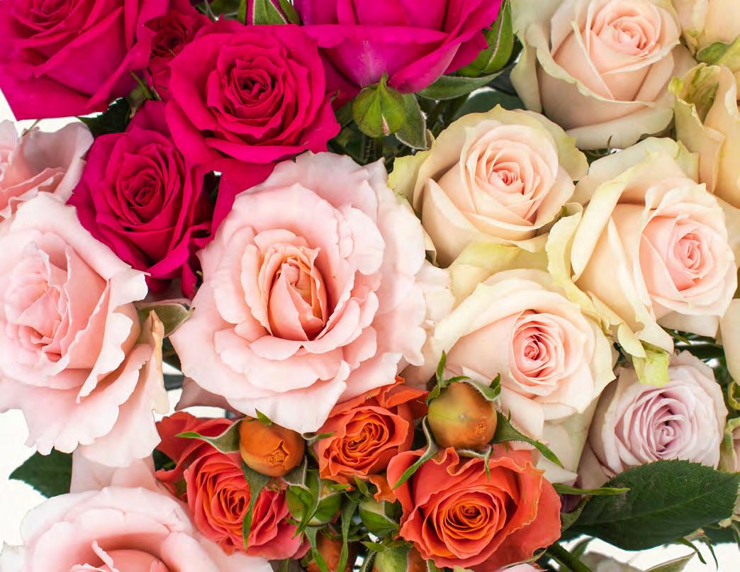 Rosaprima’s eleven varieties of spray roses encompass a wide range of colors from pinks and hot pinks, lavenders, whites/creams, oranges, peaches to yellows. Rosaprima has assigned each spray rose color to a personal style, reflecting different ways of being.