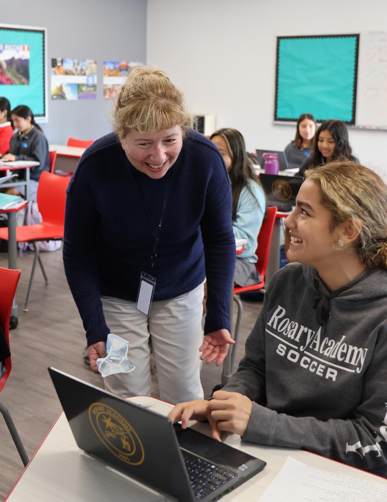 Rosary’s mission is to empower the mind, body, and spirit of each young woman with the Blessed Mother as our guide. I marvel every year at all that our students learn and accomplish as they accept God’s call as our Mother Mary did. Our students motivate me to be better and to ensure that a Catholic high school for young women continues to be relevant in our ever-changing world.