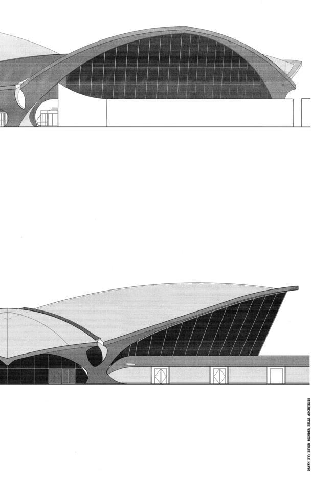 C. Rampa y pasarelas de embarque: Desde el vestíbulo, rampas curvas llevan a los pasajeros a las puertas de embarque. Estas rampas, además de ser funcionales, dan la impresión de estar "despegando", reforzando la experiencia de vuelo.