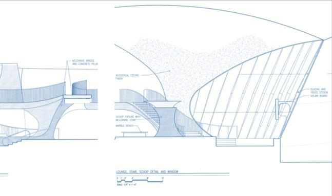 Comienzan los trabajos de diseño, donde Saarinen explora un estilo futurista que evocara la experiencia de volar.