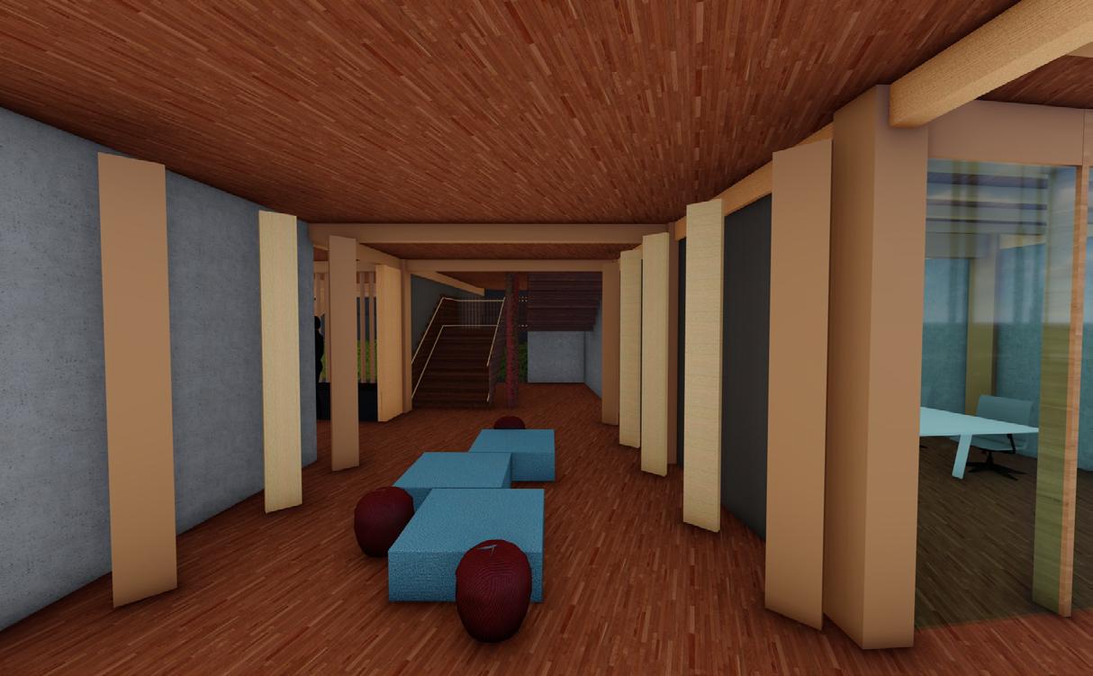 N NPT 3.00m NPT 2.50m Sala de juntas Dirección ejecutiva Terraza común Gerencia 1 Gerencia 2 Gerencia 3 Gerencia 4 Sala capacitación Cuarto de servicio Terraza de exhibixión proyectos Fundecor PLANTA NIVEL 2 SALA JUNTAS OFICINAS CAPACITACIÓN TERRAZA