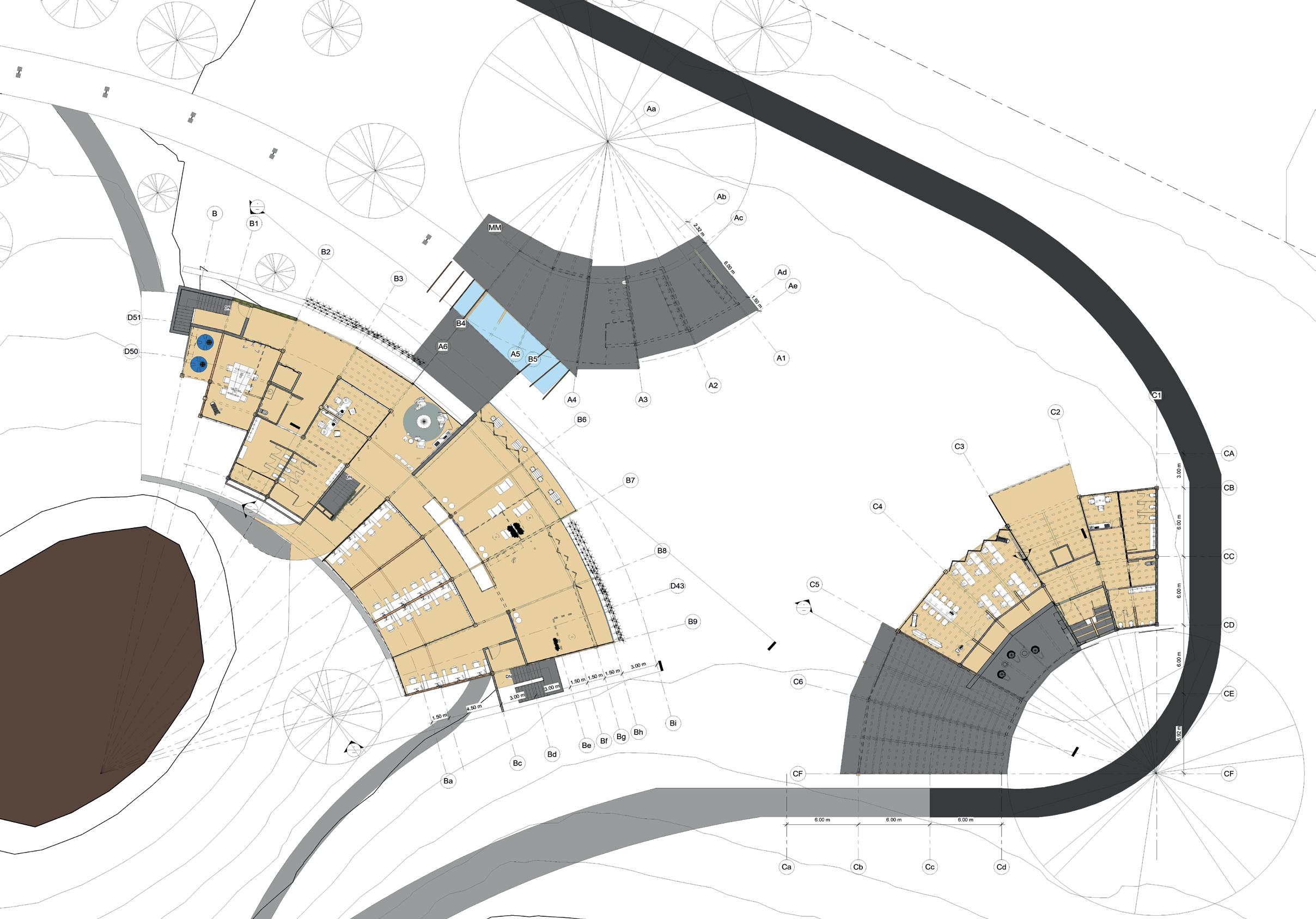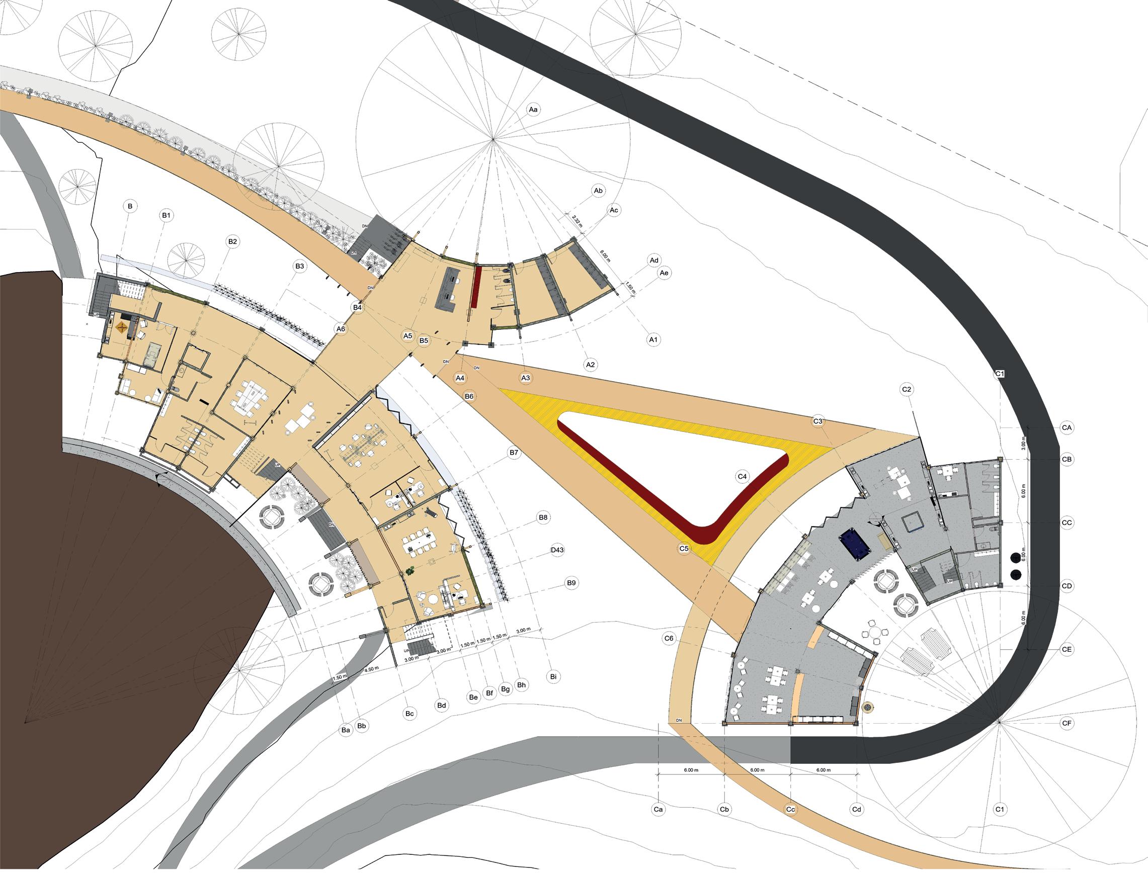 Plantas arquitectónicas Diseño de conjunto Obras exteriores Ejes relacionales