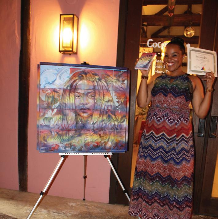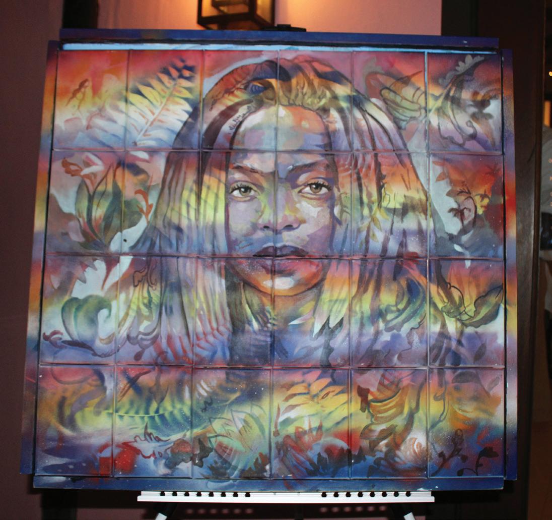 Toward the end of the evening, we were asked to select a number out of a wine box. The numbers ranged from one to twenty-four. A painting by Bahamian artist Allan Pachino Wallace was on display all evening. It was abstract art of a woman with beautiful flowing hair surrounded by greenery. The painting was 30x28 inches and was made up of twenty-four individual 5x7 canvases. One by one, we walked up to the painting in the order of the number we blindly selected