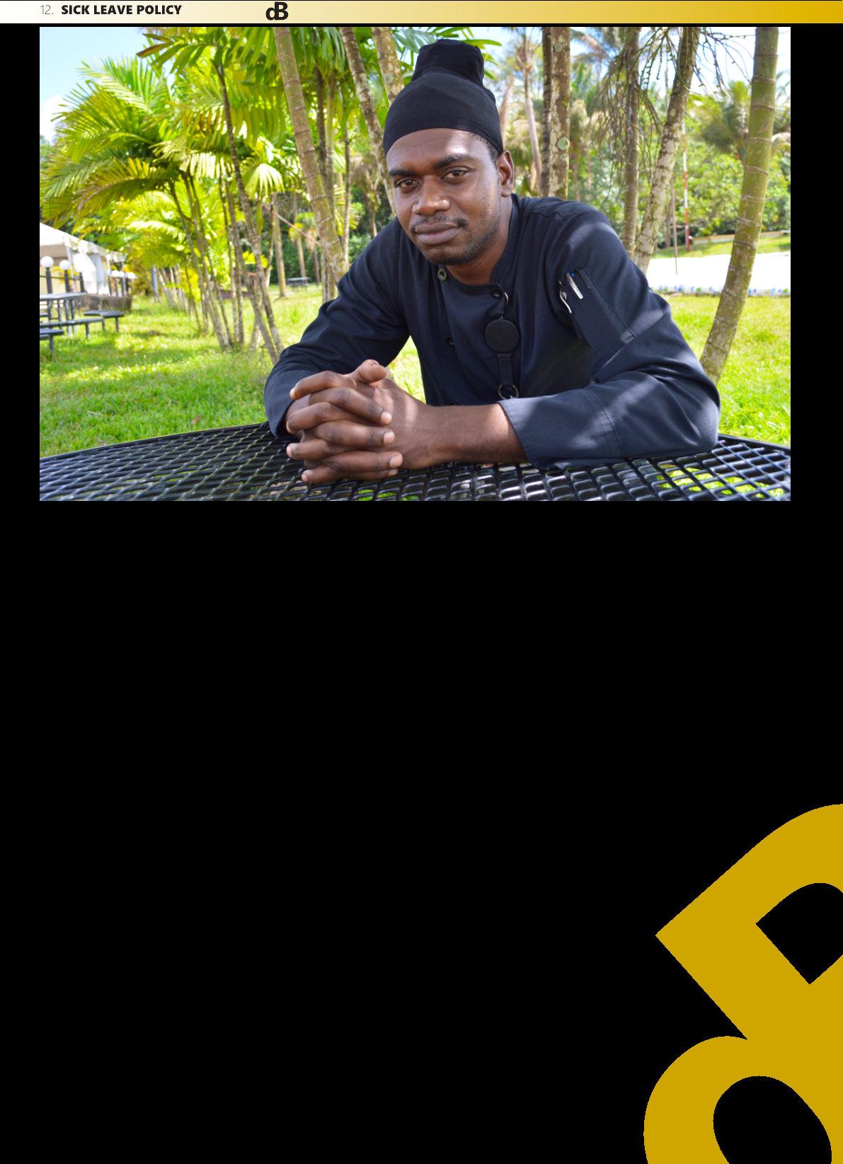 “Hetwaseen positieve ervaring.Ik voeldemijziek.Ik hadlastvanmijnrugenkoos ominplaatsvannaarmijn huisartstegaan,naardeRosebel GoldMinespoliinParamaribote gaan”,begintLorenzoHarper, ExecutiveSousChef,zijnverhaal. ZijngangnaardeParamaribo MedicalTeam(PMT)iseen succesverhaalvandeSickLeave Policygeworden.Mededankzij desnelleenprofessionele bijstandvandebedrijfsartsen gaathetvolgensLorenzo stukkenbeter.Hijverteltzijn verhaalhieronderverder.