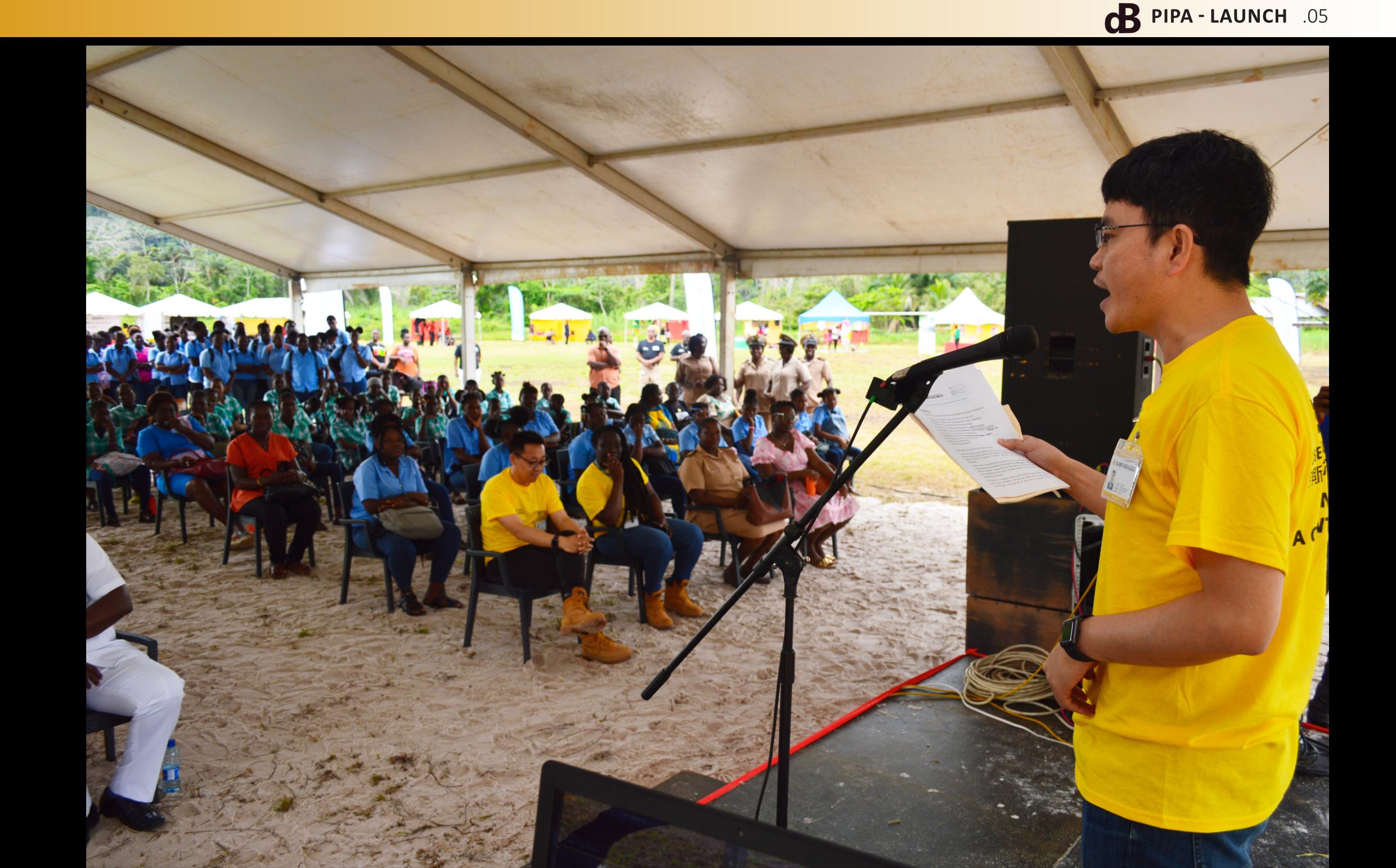"Pit Intrusion is een gevaarlijke ac�viteit die in het verleden en recentelijk hee� geleid tot verschillende incidenten met erns�ge verwondingen en doden. Helaas hee� het meest recente schie�ncident, dat in april plaatsvond in Nieuw Koffiekamp, geleid tot verwondingen en het verlies van nog een jonge Surinaamse staatsburger. Elke gewonde of dode is een tragedie die we als bedrijf ten zeerste betreuren." Dit zei Victor Wu, General Manager (GM) van Zijin Rosebel Gold Mines �jdens de start van de Pit Intrusion Public Awareness (PIPA) campagne op 12 mei 2023 in Brokopondo Centrum. Er is tegelijker�jd ook een Job Fair georganiseerd waarbij bedrijven en instan�es uit de omgeving lieten zien welke producten en diensten er in Brokopondo beschikbaar zijn. De launch van de campagne werd afgesloten met een mo�va�esessie voor de leerlingen van de LBO en MULOscholen uit district Brokopondo.