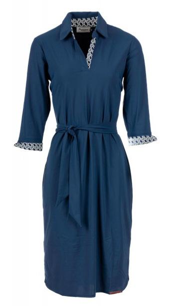 Jurk van Provence met 3/4 mouwen en een tulpmanchet. De jurk heeft een polokraag en is gemaakt van de populaire travel kwaliteit.