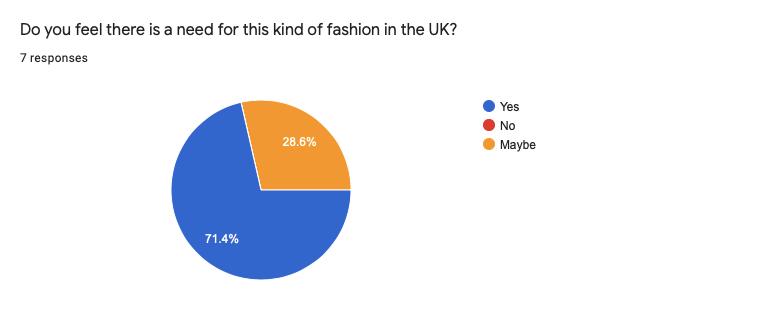 On a consumerism level, 71.4% of UK consumers feel there is a need for the type of fashion Avtandil has to offer and 86.7% of them would be interested in purchasing its products (Appendices). However, the prices Avtandil presents are way higher than what UK consumers are ready to spend between £40 - £300 on Avtandil's products (Appendices).