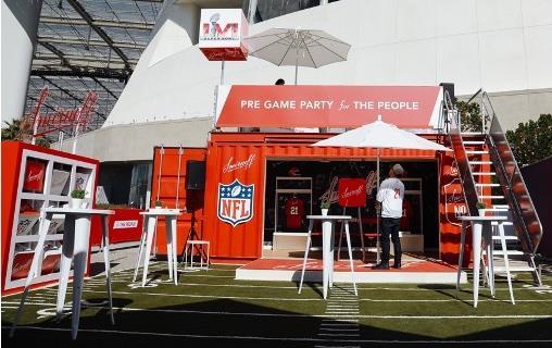 RGC brought the Container to Superbowl as the largest activation on the grounds. We added to the footprint that included a custom tailgate-house inspired build with three rooms that increased our footprint to 40x40. A custom satellite bar and spinner game engaged guests while sampling cocktails. The living room was a place guests could mingle and enjoy the sport-related artifacts hanging in the room. Inside the container our AR photo booth captured photos guests could share during their once in a lifetime Superbowl day.