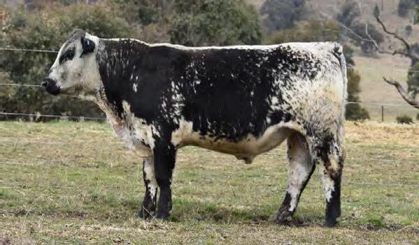 Leopard in colour to produce speckled calves from black cows. A deep bodied bull, suitable for producing feedlot steers. Great acquisition to commercial breeder. Tick vaccinated.