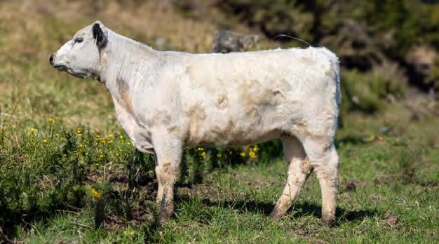A quiet well-structured young white bull with good muscle pattern being Leptin TT. He is a red factor gene carrier for those wanting to breed Red Speckles.