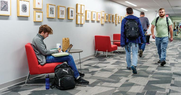 It didn’t take long after their openings for students to find places in the New Academic Building and the Mussallem Union and its adjacent Pi-Vilion to study, stretch and relax, meet with friends, host group meetings, and enjoy life before, in between and after classes. There are also renovated study spaces available in the Logan Library, Olin Hall and the Olin Advanced Learning Center. And Phil Brown Field’s new scoreboard has a large electronic display that offers opportunities