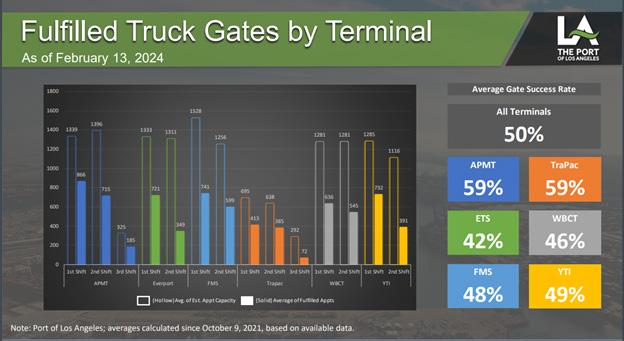 “Fulfilled Truck Gates by Terminal.” The Port of Los Angeles, February 21, 2024. https://kentico.portoflosangeles.org/ getmedia/e7e35d31-c560-49fe-be52-f335412879e8/appointment-report