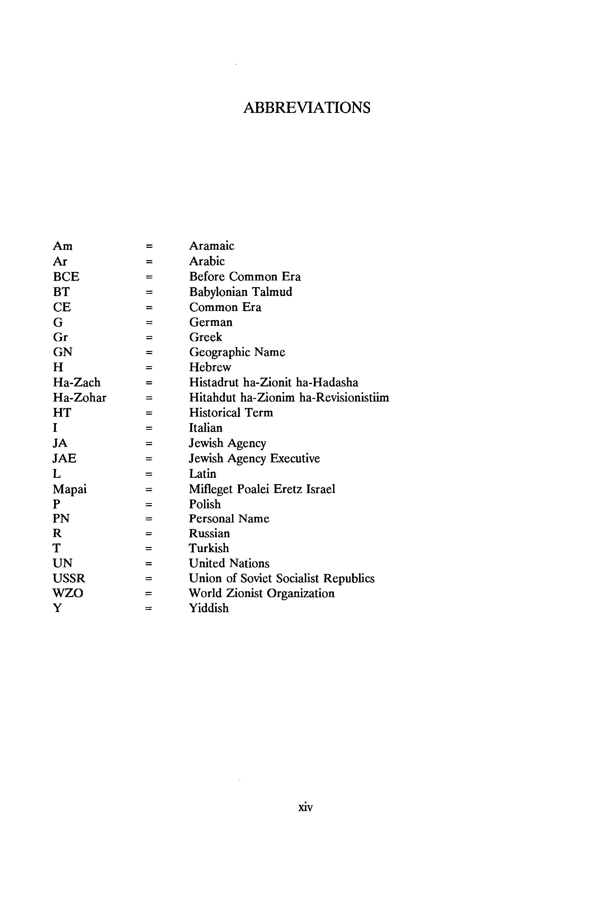 USSR Union of Soviet Socialist Republics wzo World Zionist Organization y Yiddish