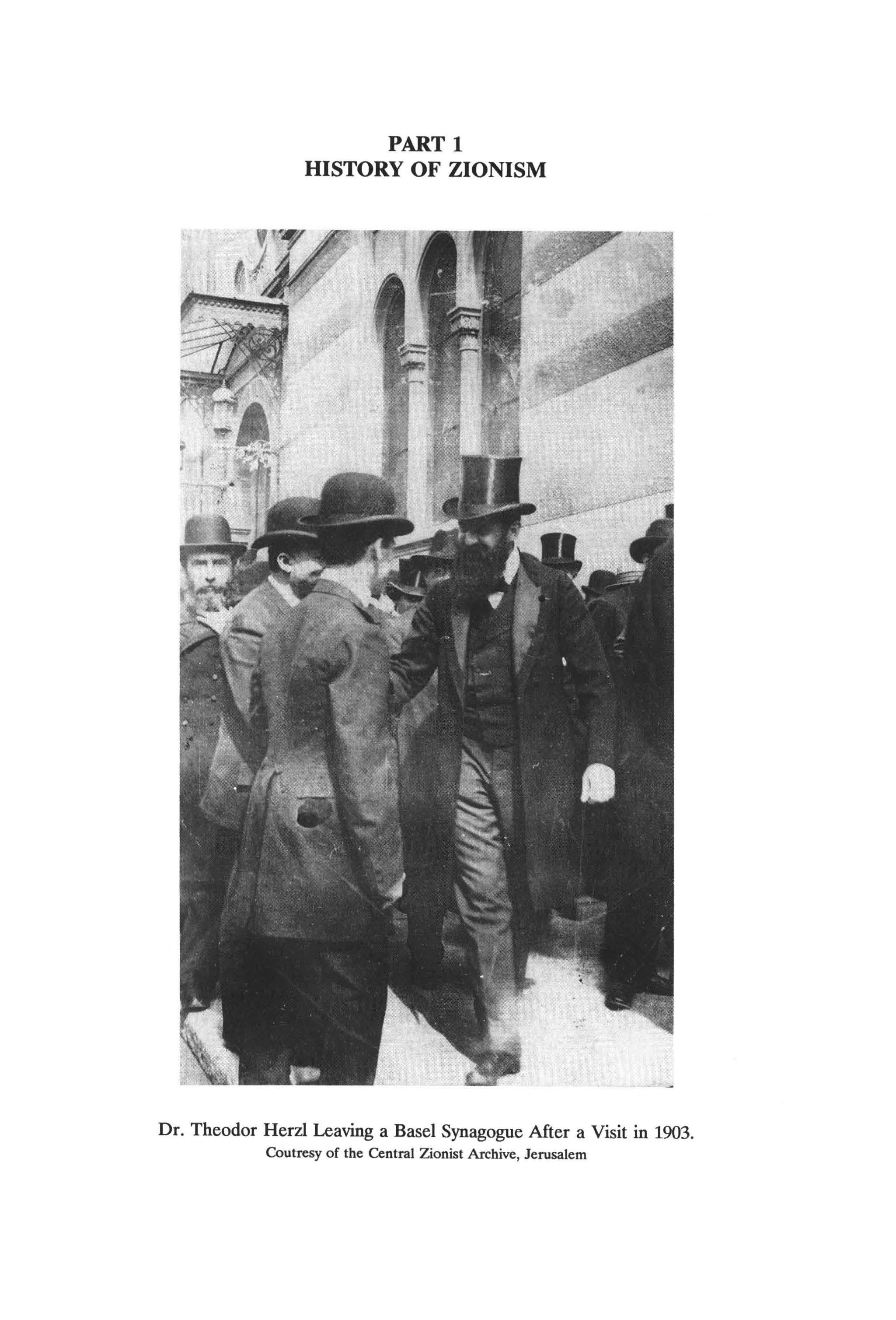 Dr. Theodor Herzl Leaving a Basel Synagogue After a Visit in 1903. Coutresy of the Central Zionist Archive , Jerusalem