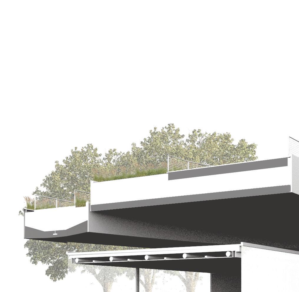 roof pavers are used for the circulation on the roof allowing the negative space to become a green roof