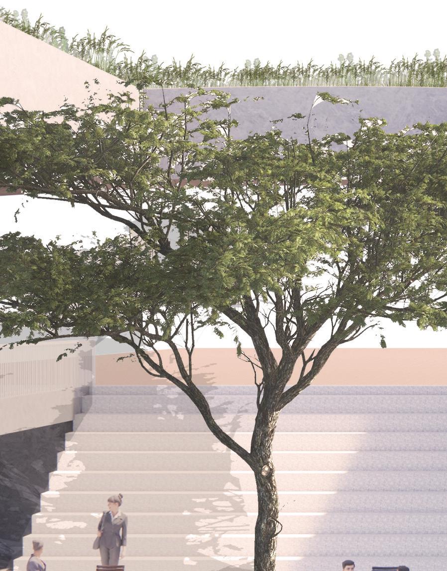 The tree in the courtyard is both aesthetic but serves as more shade to the circulation path.