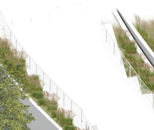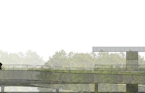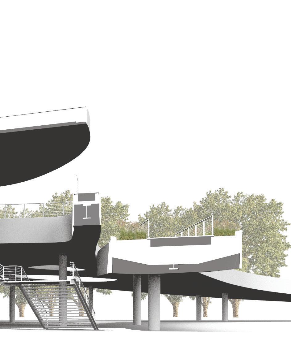 BOARD WALK providing a walking path around the site promotes users to explore and gives a safe walking path the ampitheater will service as a gathering place for the locals to watch outdoor shows with the Kansas River as a back drop