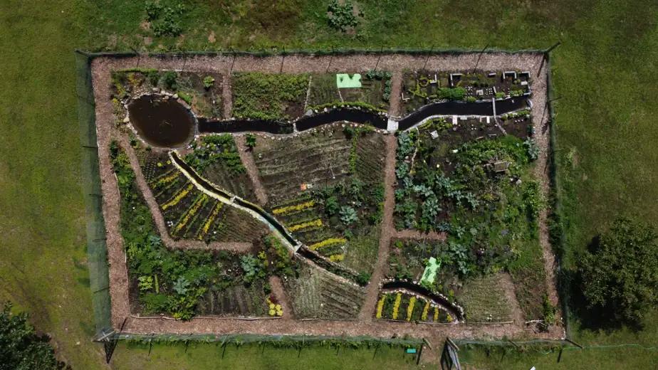 L’artiste de 47 ans a planté des kales pour figurer la forêt, des échinops pour donner une teinte bleutée au mont, et des légumes et plantes aromatiques pour ajouter d’autres couleurs : tomates, concombres, courges, carottes, fèves, thym, absinthe, etc. Un morceau de plywood représente le golf local et de petits blocs de ciment, la ville de Belœil ! 1/ 2